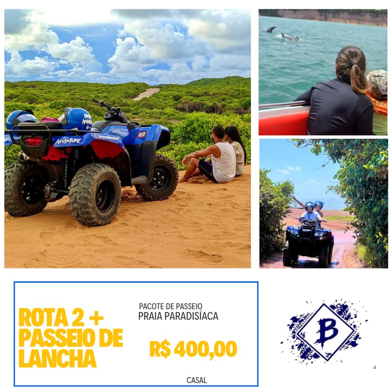 Esse combo é ideal para quem quer uma experiência mais completa e intensa em Pipa, combinando a rota Pipa Plus — com mais tempo de percurso, trilhas e praias — com o inesquecível passeio de lancha para avistar golfinhos de perto 🐬✨